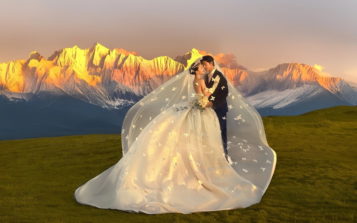 免租婚礼当天:婚纱+秀禾服+敬酒服+伴郎服+伴娘服