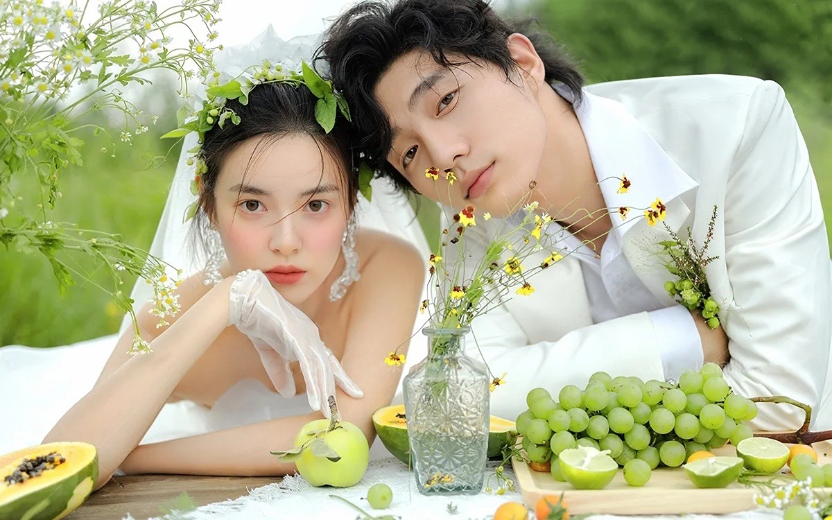 送:结婚登记照拍摄。1.8米婚宴X展架。入册30张(10p精修时尚设计)